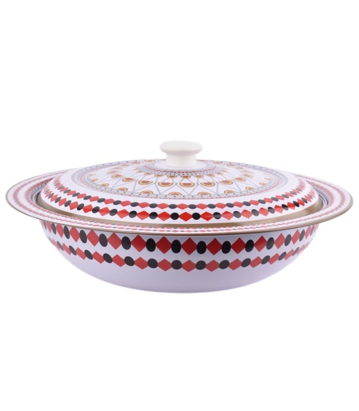 زبديه غضار كبير بغطاء نقشه تراثيه 3 احمر SH19948