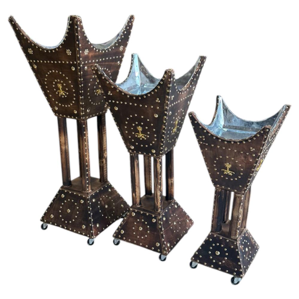 طقم مباخر كبير خشب محروق ٣ قطع للزينة