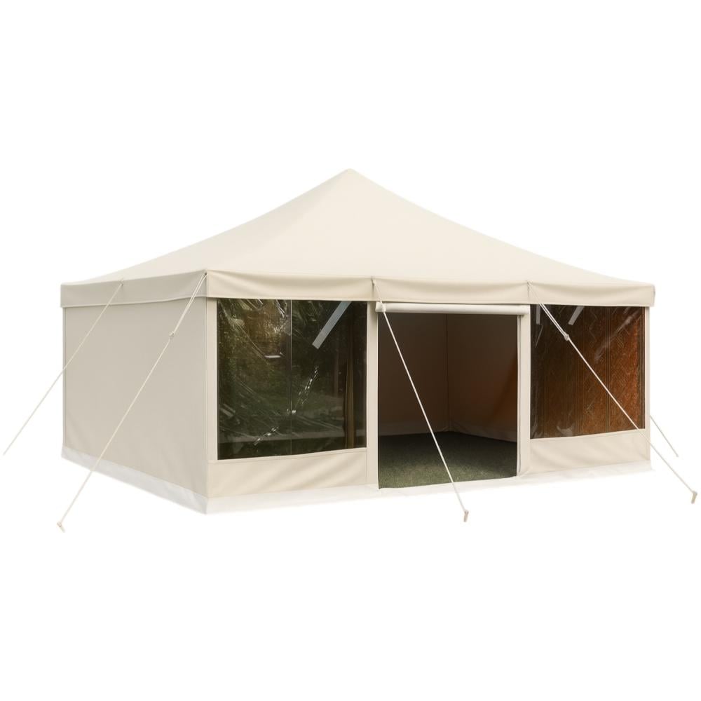 خيمة فاخرة قطنية ثلاث طبقات، مصنوعة من خامات عالية الجودة وفق أفضل المواصفات المعتمدة، وتأتي كاملة بجميع ملحقاتها.
