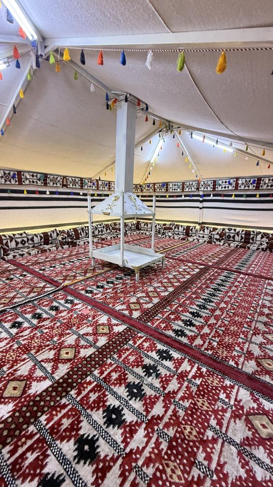 بيت شعر متحرك بنظام ثابت يجمع بين المتانة والجمال، مصنوع من أجود أنواع الخيام ذات الجودة العالية والتصميم العملي.
